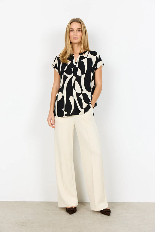 Chemisier abstrait noir et crème