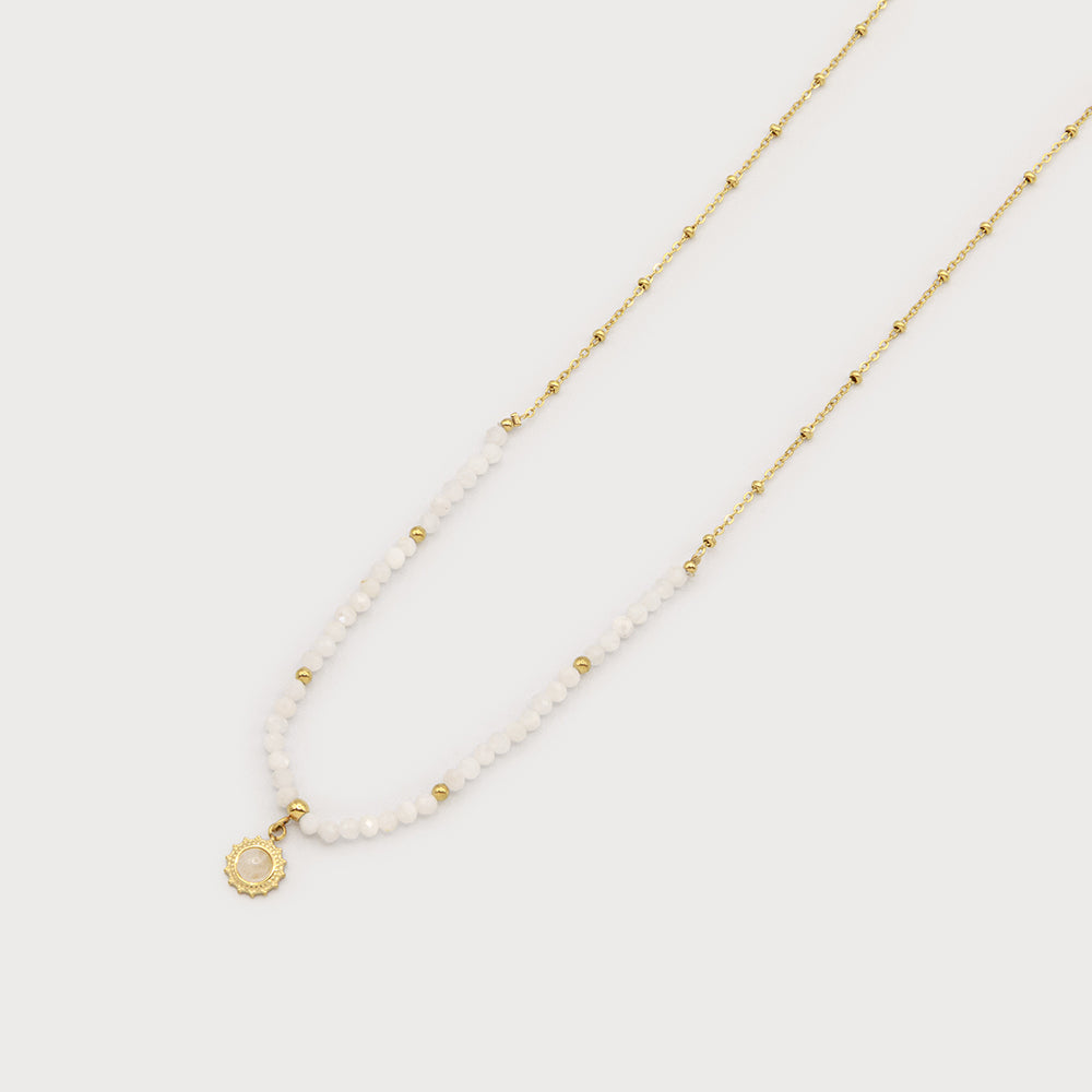 - Collier petites perles naturelles avec médaillon soleil